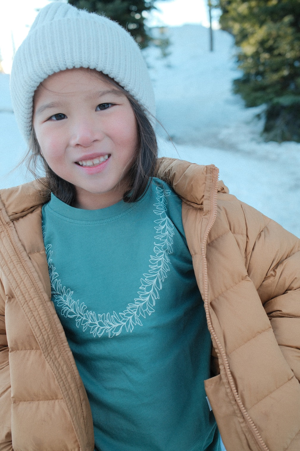 We couldn't forget our keiki!  Our best selling Lei Pua Melia Tee is available for the first time ever in a cut & sew Keiki Tee!  This means that this Keiki tee was dyed, cut, sewn, and printed exclusively for us.  Now, our Keiki can now match their mommies, aunties, tutu, etc.  The colors of this tee match perfectly with our Women's Lei Pua Melia tee.