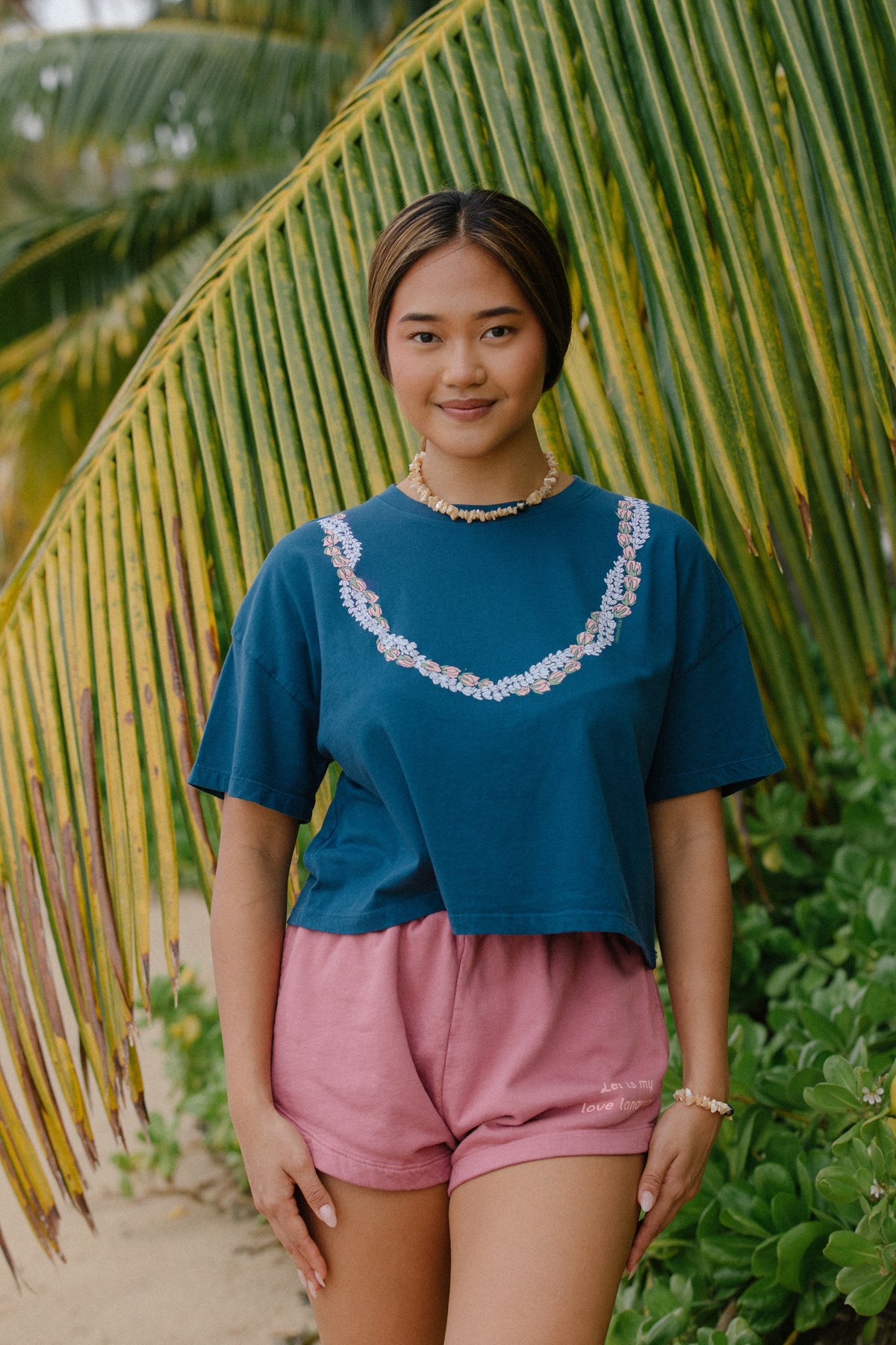 This tee design is a tribute to the special tradition of wearing and gifting lei. It’s not just a shirt, it’s an embodiment of the way a lei hugs you and makes you feel cherished and loved. May this tee remind you of your favorite moments with your loved ones surrounded by our beloved lei.
