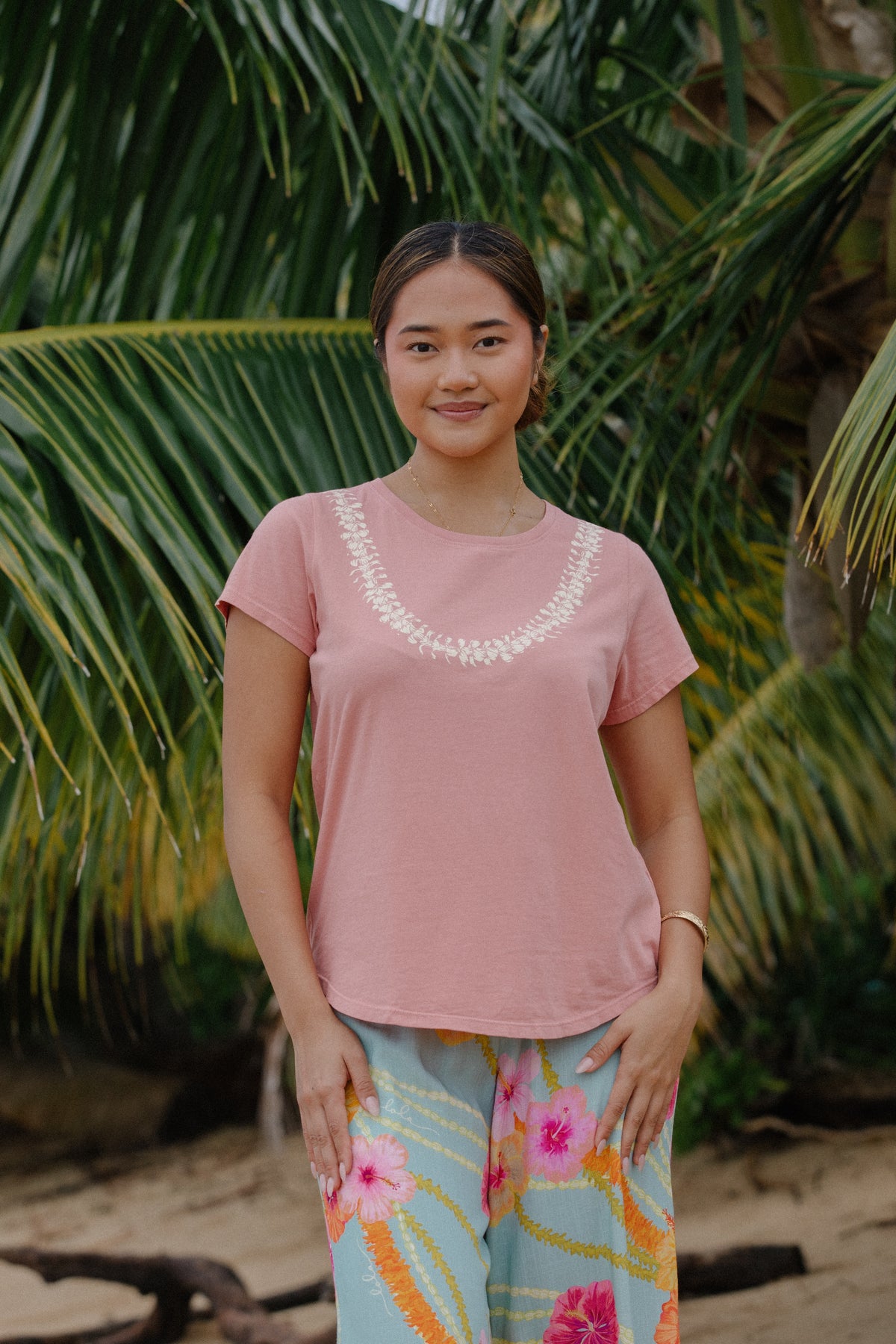 This tee design is a tribute to the special tradition of wearing and gifting lei. It’s not just a shirt, it’s an embodiment of the way a lei hugs you and makes you feel cherished and loved. May this tee remind you of  your favorite moments with your loved ones surrounded by our beloved lei.
