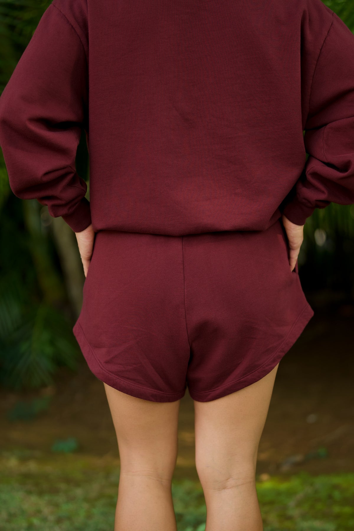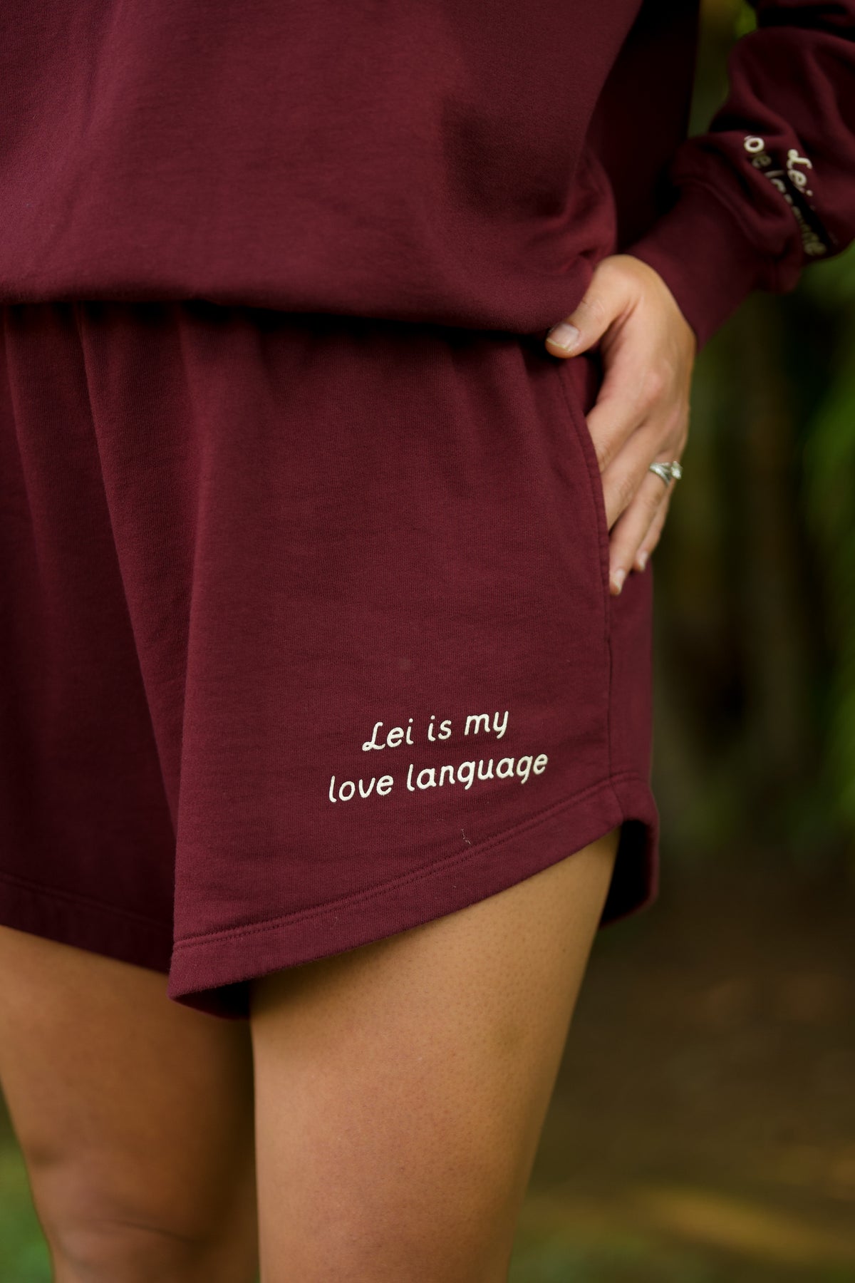 Inspired by the '70s and the "dolphin shorts" trend, this style is fun and flattering! Our Hilo Shorts have a slight A-line shape and curved hems. They pair perfectly with our Sweatshirts to create a complete comfy and classy lounge set. You will also find our signature saying, Lei is my love language printed on the leg.
