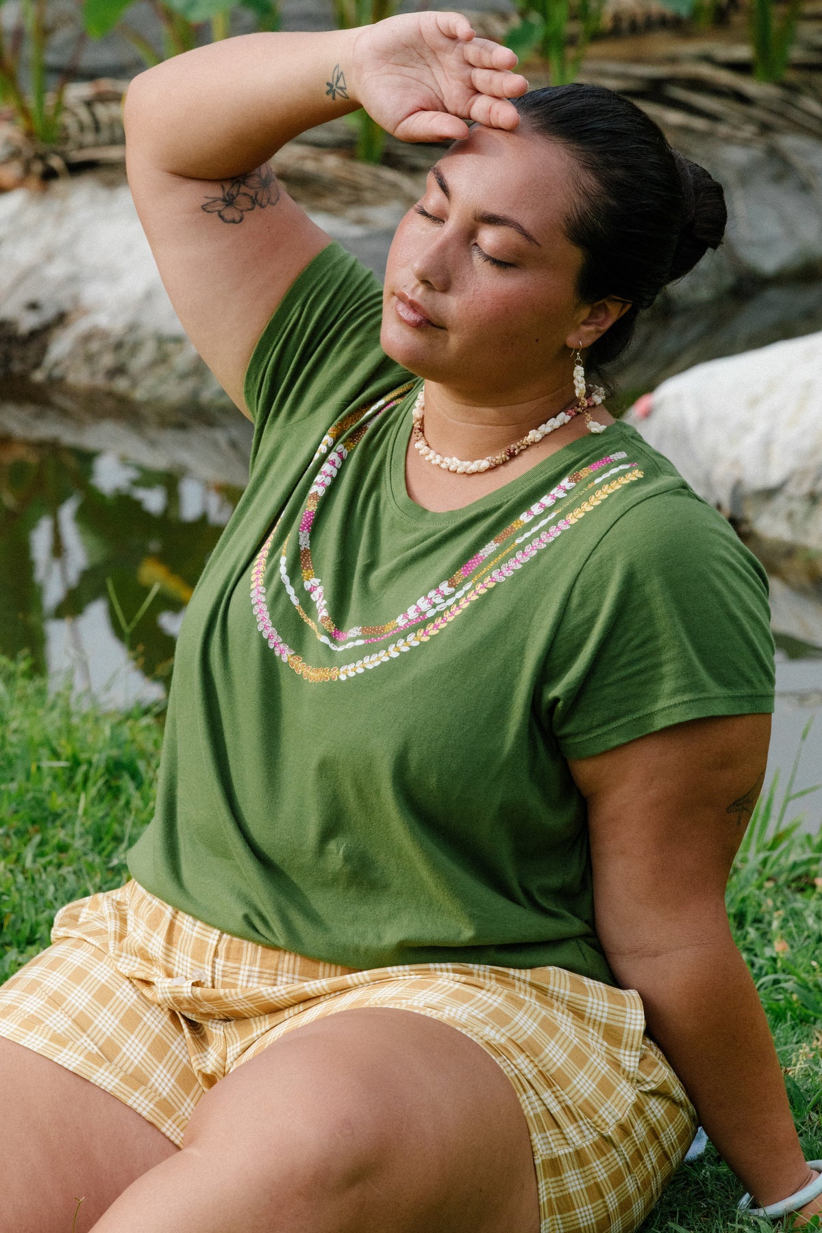 We dedicate this design to Queen Kapi'olani. In 1887, she wore a multi-strand lei of ivory-colored Ni'ihau shells for her portrait in New York before attending Queen Victoria's Jubilee. To honor this fusion of Hawaiian tradition and Victorian style, we've created this special design that pays homage to Queen Kapi'olani and her iconic portrait and celebrates the enduring beauty and cultural significance of the Ni'ihau shell lei.